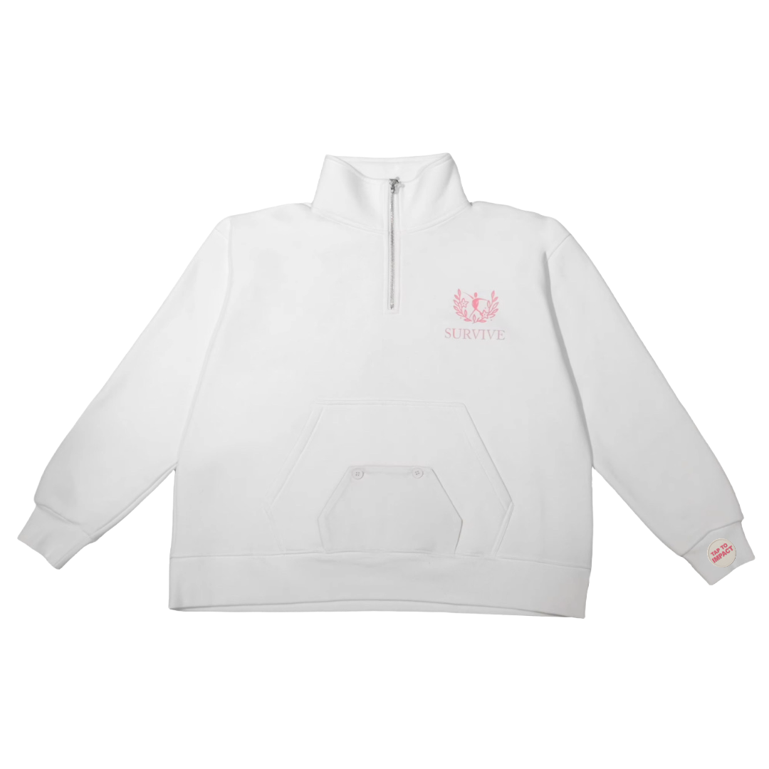 Each piece features a patch on the left cuff that turns you into a walking ambassador for I Will Survive, Inc. A simple tap with a smartphone instantly brings up the I Will Survive, Inc. donation page, enabling individuals to actively drive donations, and support a great cause!